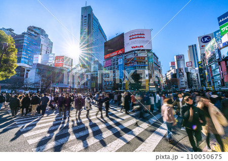 日本の東京都市景観 師走の慌ただしさ…賑わう渋谷。光と影…明日へ希望の光・輝きの時代へ…=23日
