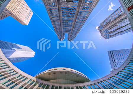 日本の東京都市景観 東京都庁・パスポート(旅券課)などを望む。新時代へ、希望の光…