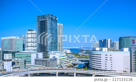 日本の横浜都市景観 みなとみらいのKアリーナや新高島駅周辺などを望む=13日