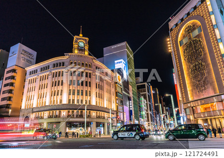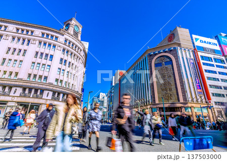 日本の東京都市景観 元日…煌めく銀座…散策を楽しむ外国人観光客らで賑わう。…輝きの時代へ=令和7年