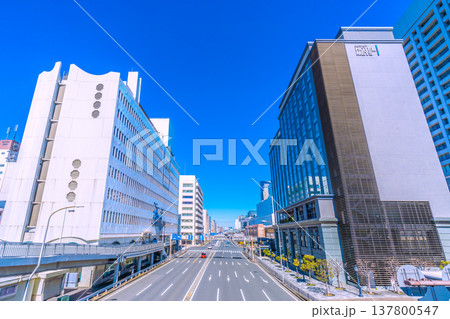 日本の横浜都市景観 桜木町駅 新南口側、桜木橋から桜木町ぴおシティなどを望む