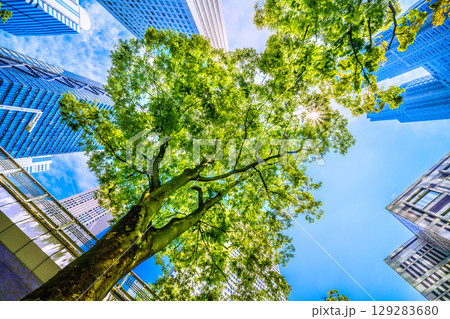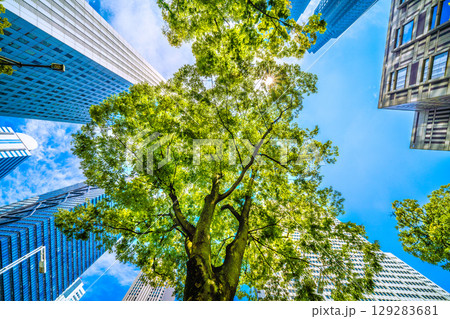日本の東京都市景観幸運の木…ケヤキや東京都庁などのビル群