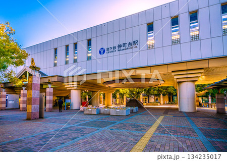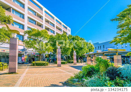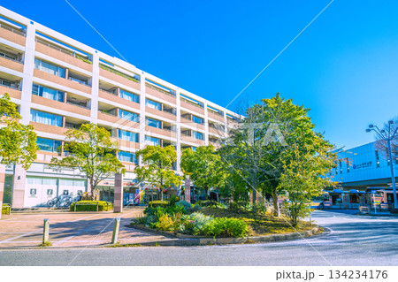 日本の横浜都市景観 横浜市営地下鉄 仲町台駅前(右奥が仲町台駅)などを望む