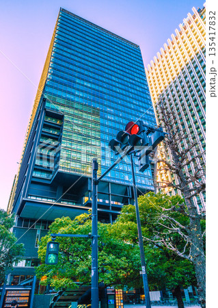 日本の東京都市景観帰宅を急ぐビジネスマンら…。大手町から大手町駅前の交差点などを望む。奥は丸の内