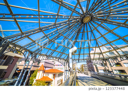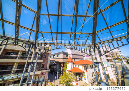 日本の横浜都市景観 年の瀬…横浜市営地下鉄 中川駅など望む。歩道橋に降りそそぐ太陽光…=16日