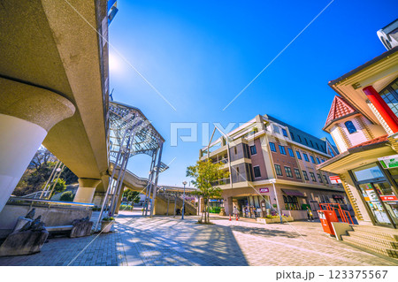 日本の横浜都市景観 横浜市営地下鉄 中川駅(副名称・東京都市大横浜キャンパス前)出入口前などを望む