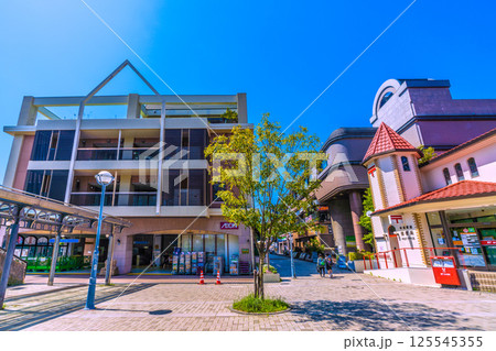 日本の横浜都市景観 横浜市営地下鉄 中川駅(東京都市大横浜キャンパス前)前や中川駅前郵便局などを望む