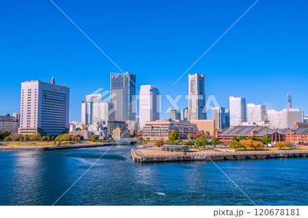 日本の横浜都市景観 横浜税関・クイーンの塔やパシフィコ横浜などみなとみらいの街を望む=28日