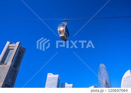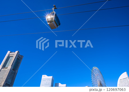 日本の横浜都市景観 11月。ロープウェイを望む。左はYOKOHAMA AIR CABIN桜木町駅方向