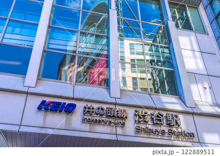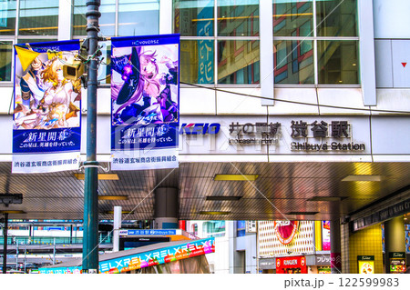 日本の東京都市景観朝の光…移転ハチ公改札…新出入口…渋谷駅…新時代に希望の光=令和7年2月15日