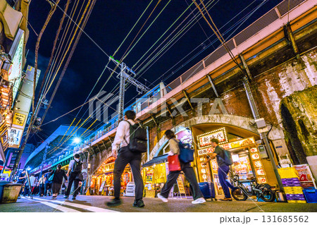 日本の東京都市景観10月17日。新橋駅 烏森口側から、高架下の飲み屋街などを望む