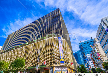 日本の東京都市景観10月17日。新橋駅 烏森口前の新橋西口通りなどを望む