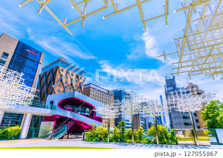 日本の東京都市景観 渋谷サクラステージ・にぎわいSTAGEやビル群などを望む