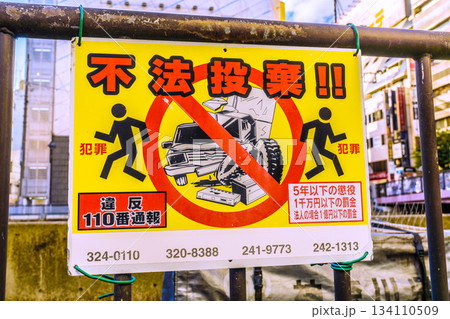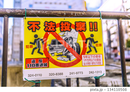 日本の横浜都市景観 師走。横浜駅前。「不法投棄」はダメ…奥は、ビックカメラや横浜ビブレ、南幸橋