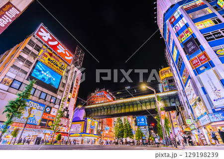 日本の東京都市景観夜遅くでも若者や外国人観光客らで賑わう秋葉原=19時55分
