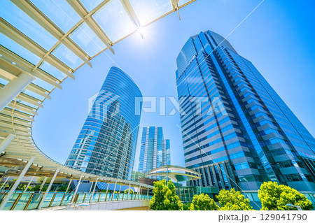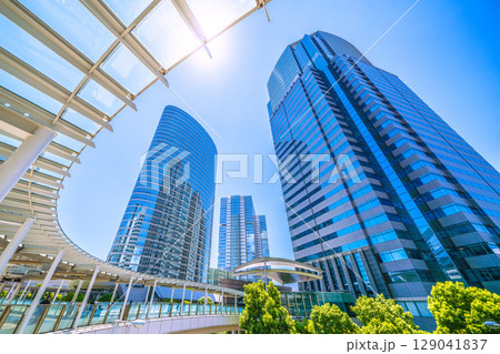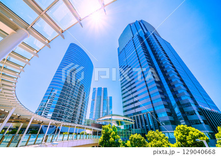 日本の東京都市景観 希望の光…7月。猛烈な暑さ…品川駅前のオフィスビル群などを望む。新時代へ=26日