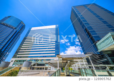 日本の東京都市景観 品川駅前のオフィスビル群などを望む