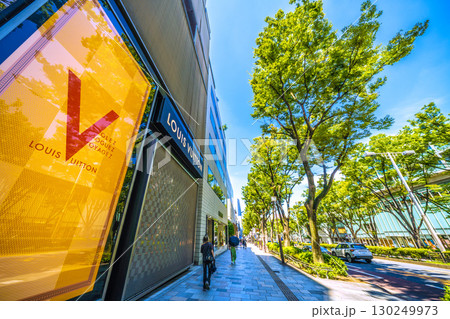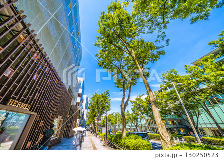 日本の東京都市景観 東京・表参道の緑溢れる並木やバーバリーなどを望む=24日