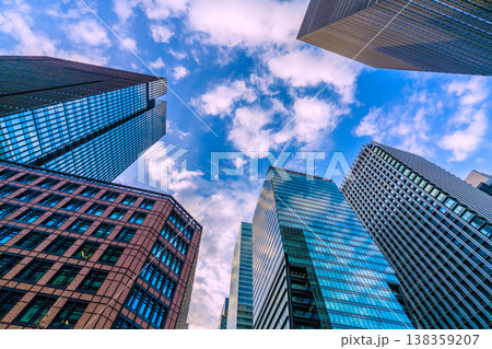 日本の東京都市景観 大手町ファーストスクエアなど摩天楼を望む