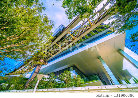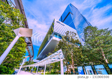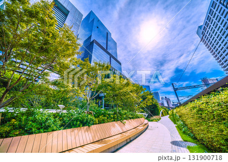 日本の東京都市景観 浜松駅とブルーフロント芝浦などを結ぶ歩行者専用の通路などを望む