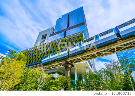 日本の東京都市景観 ブルーフロント芝浦やモノレールなどを望む
