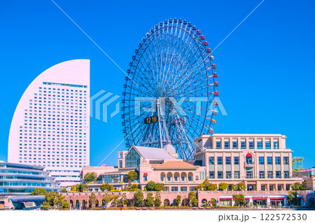 日本の横浜都市景観 大観覧車やアニヴェルセルみなとみらい横浜などを望む=令和7年1月22日