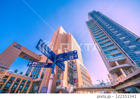 日本の横浜都市景観 桜木町駅 南改札(西口)側からホテルメッツや富士ソフトなどを望む