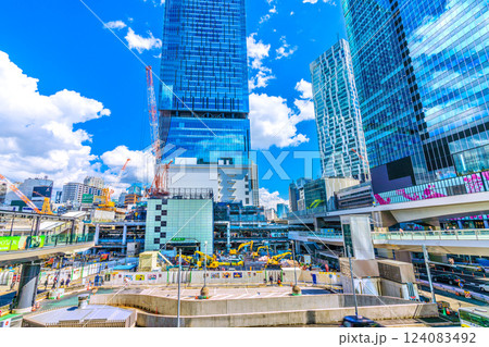 日本の東京都市景観NTTドコモ代々木ビルや渋谷駅西口、ビル群…渋谷スクランブルスクエア、渋谷アクシュ