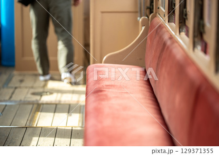 三重県いなべ市 阿下喜駅に停車中の西桑名行きの三岐鉄道歴史電車の車内