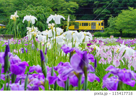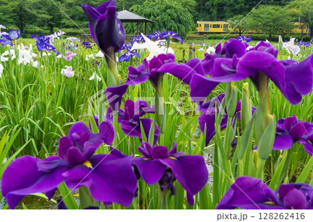 花菖蒲と西武鉄道 北山公園菖蒲園