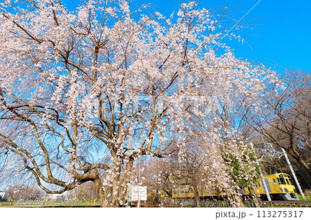 北山公園の枝垂れ桜と西武園線
