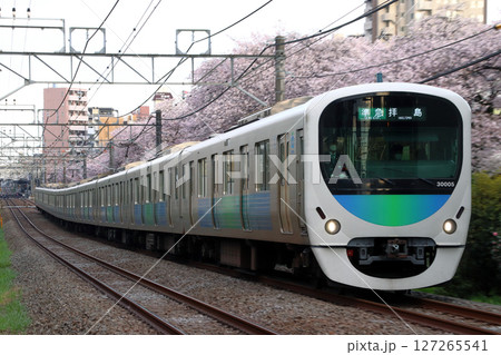 桜と西武新宿線30000系電車(準急-10両編成:西武新宿⇔拝島)