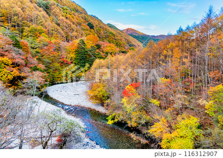秋の山梨県山梨市 紅葉の西沢渓谷 大久保沢