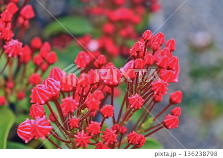 金平糖のような形をした濃い色の蕾のかわいい花カルミア