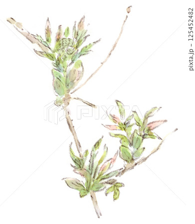 早春の植物、セイヨウニワトコの芽吹き。水彩画イラスト