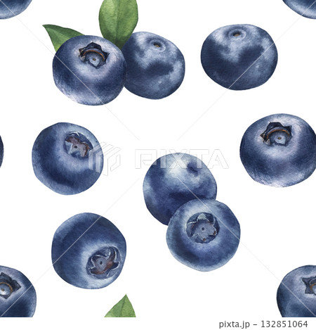 Blueberries with leaves watercolor seamless pattern. Hand drawn illustration