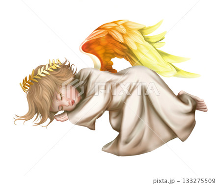 天使 リボン 飾り 版画 ペン画 絵画 水彩 油絵 手描き 芸術 コピースペース イラスト素材セット