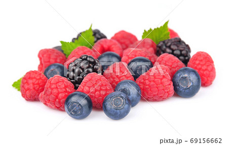 Mix of different berries on a white background. Isolated