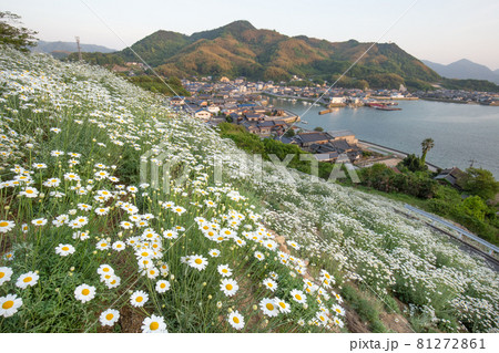 今はフェリーが廃止された重井港を望む因島の除虫菊畑 広島県尾道市