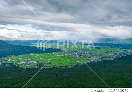 美しい晴天空の阿蘇大観峰付近の風景写真Aso Daikanbo scenery Japan