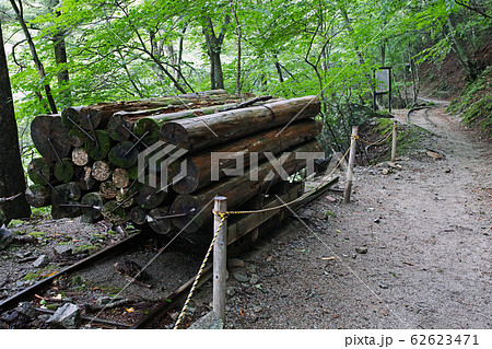 山梨県/ 西沢渓谷 トロッコと軌道跡