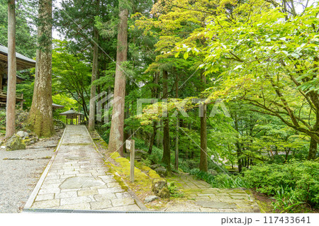 岐阜県揖斐川町 西美濃三十三霊場第一札所の新緑の横蔵寺の境内
