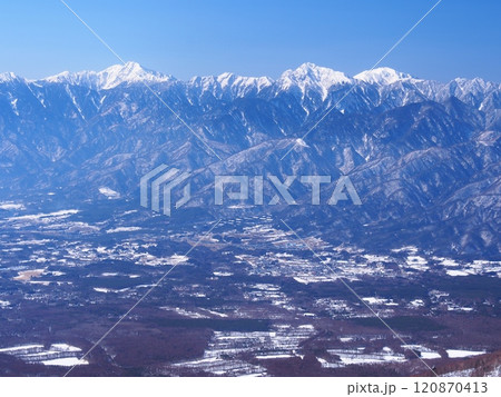 冬の中央アルプス稜線と木曽駒ヶ岳