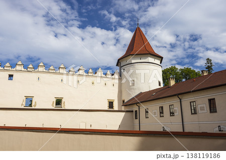 Kezmarok Castle tower and wall on a sunny day in Slovakia