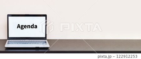 agenda 目次 の 文字 が PC 画面 に 表示 【 ウェブページ 素材 】