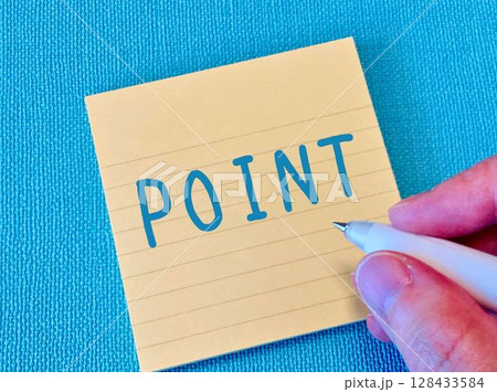 青字でPOINTと付箋に書く手元
