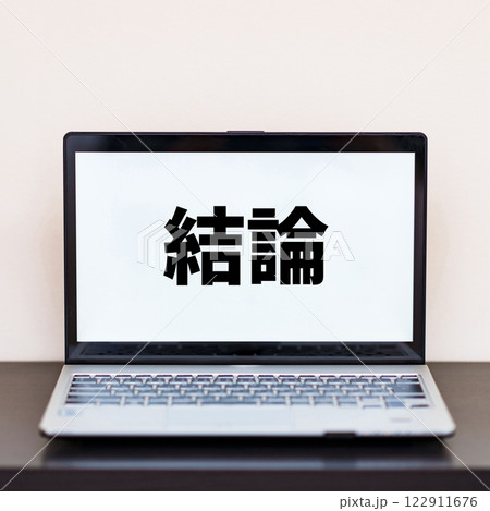 conclusion 結論 の 文字 が PC 画面 に 表示 【 ウェブページ 素材 】