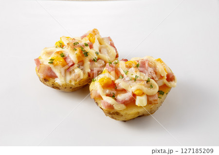 ベーコンとゆで卵のポテトボートグラタン