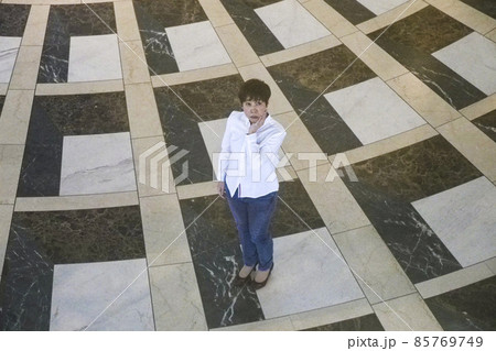 人物、風景、写真 迷い道で迷う女性 東京駅でこれからどうしよと迷う女性