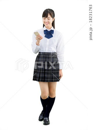 制服姿の女子学生の白バックの全身ポーズ